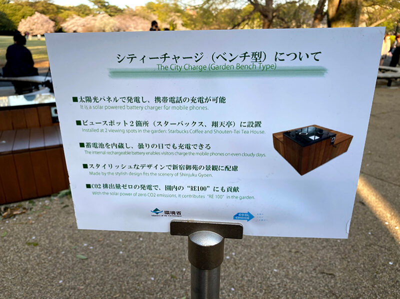 ソーラーパワーで充電できるUSB端子付きのベンチもスタバ前にあります。